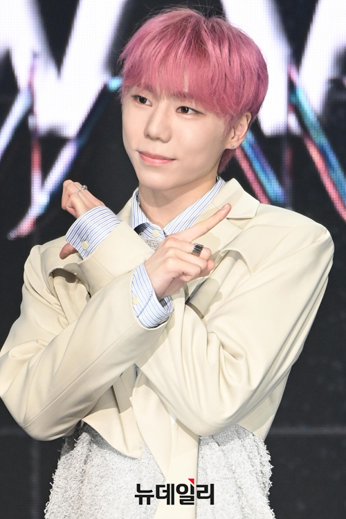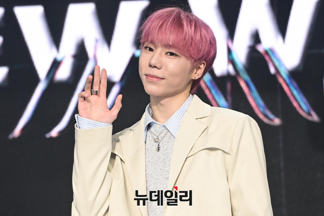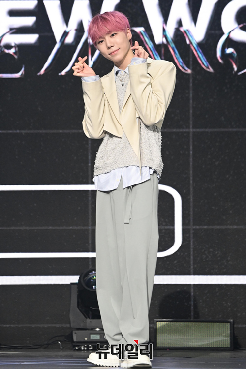 신인 아이돌그룹 나인아이 멤버 태훈이 30일 오후 서울 용산구 블루스퀘어 마스터카드홀에서 열린 첫 번째 미니앨범 '뉴 월드(NEW WORDL)' 발매 기념 쇼케이스에서 포즈를 취하고 있다.