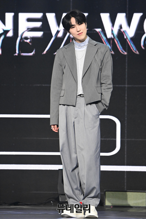 신인 아이돌그룹 나인아이 멤버 주형이 30일 오후 서울 용산구 블루스퀘어 마스터카드홀에서 열린 첫 번째 미니앨범 '뉴 월드(NEW WORDL)' 발매 기념 쇼케이스에서 포즈를 취하고 있다.그룹 '나인아이'는 가수 박선주, 나윤권, 키썸, 허찬미 등이 소속된 퍼스트원엔터테인먼트에서 처음으로 선보이는 10인조 보이그룹이다. 한국인 멤버 9명과 태국인 멤버 1명으로 구성됐다.타이틀곡 '패럴렐 유니버스'를 포함해 '인트로' '뷰티 인사이드' '웨이스티드 유스' '데이즈 데이즈'까지 총 5곡이 수록 됐다.