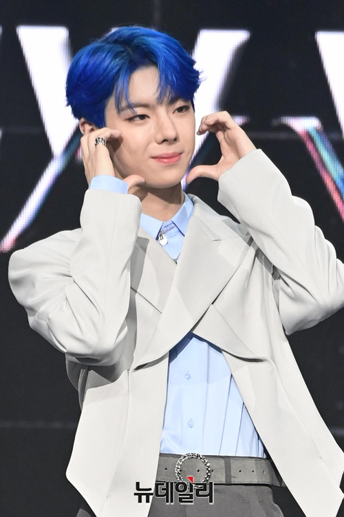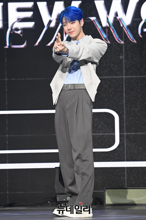 신인 아이돌그룹 나인아이 멤버 지호가 30일 오후 서울 용산구 블루스퀘어 마스터카드홀에서 열린 첫 번째 미니앨범 '뉴 월드(NEW WORDL)' 발매 기념 쇼케이스에서 포즈를 취하고 있다.그룹 '나인아이'는 가수 박선주, 나윤권, 키썸, 허찬미 등이 소속된 퍼스트원엔터테인먼트에서 처음으로 선보이는 10인조 보이그룹이다. 한국인 멤버 9명과 태국인 멤버 1명으로 구성됐다.타이틀곡 '패럴렐 유니버스'를 포함해 '인트로' '뷰티 인사이드' '웨이스티드 유스' '데이즈 데이즈'까지 총 5곡이 수록 됐다.