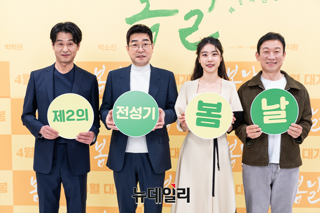 배우 박혁권, 선현주, 박소진, 정석용, 감독 이돈구(오른쪽부터)가 30일 오전 온라인으로 열린 영화 '봄날' 제작보고회에서 포즈를 취하고 있다.