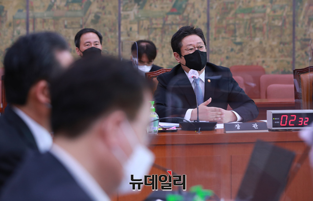 황희 문화체육관광부장관이 31일 오전 국회 문화체육관광위원회 전체회의에서 의원들의 질문에 답하고 있다. (사진=공동취재단)