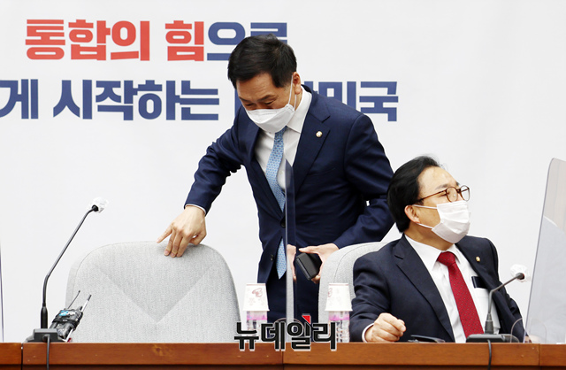 김기현 국민의힘 원내대표가 1일 오전 국회에서 열린 원내대책회의에 참석하고 있다. (사진=공동취재단)