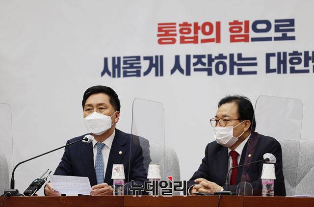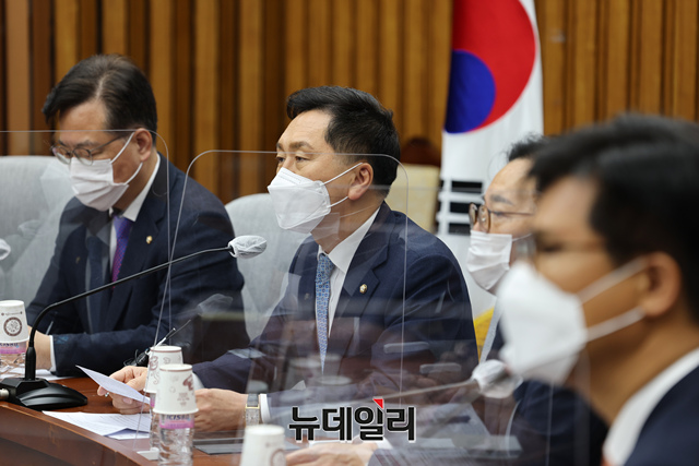 김기현 국민의힘 원내대표가 1일 오전 국회에서 열린 원내대책회의에 참석해 모두발언을 하고 있다. (사진=공동취재단)