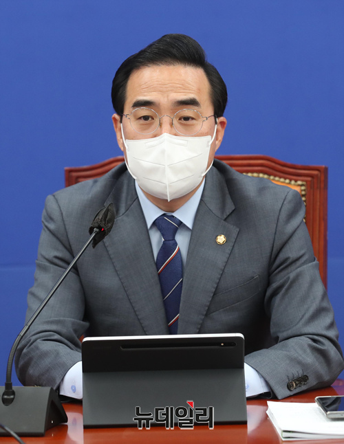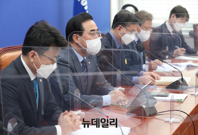 박홍근 더불어민주당 원내대표가 5일 오전 국회에서 열린 원내대책회의에서 모두발언을 하고 있다. (사진=공동취재단)
