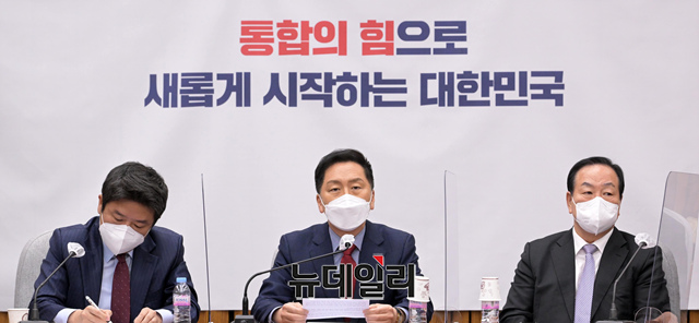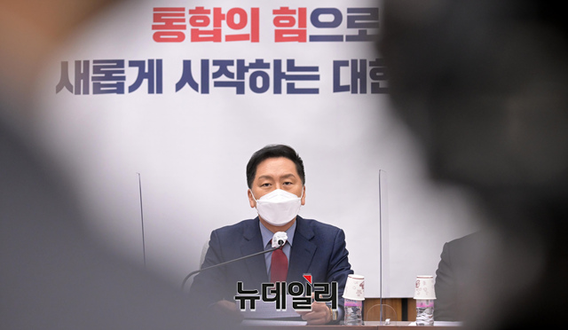 김기현 국민의힘 원내대표가 5일 오전 국회에서 열린 마지막 원내대책회의에 참석해 모두발언을 하고 있다. (사진=공동취재단)