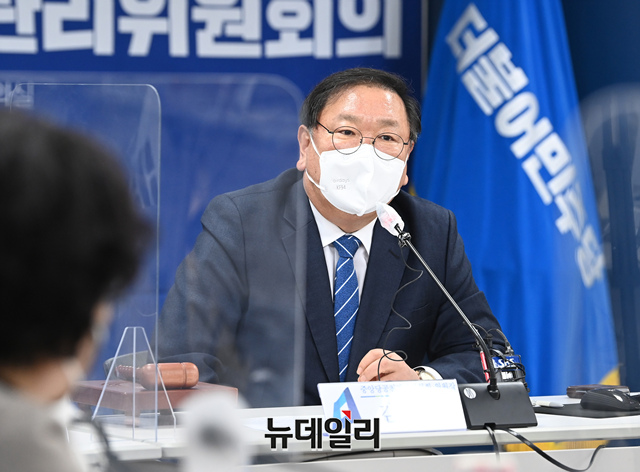 더불어민주당 6·1지방선거 중앙당 공직선거후보자추천관리위원회 첫 회의가 4일 오후 서울 여의도 더불어민주당 당사에서 열린 가운데 김태년 공천관리위원장이 회의를 주재하고 있다. (사진=공동취재단)