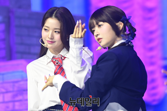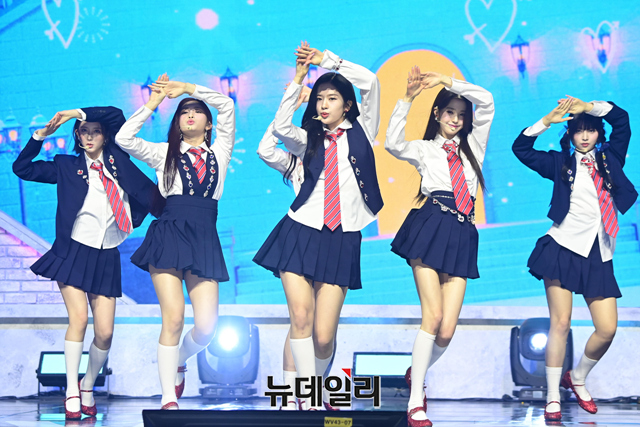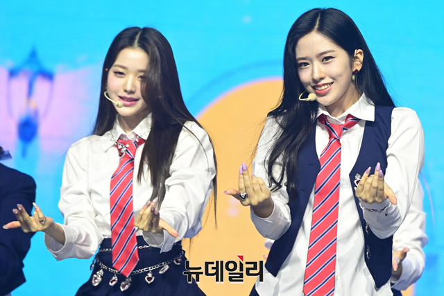걸그룹 아이브(유진, 가을, 레이, 장원영, 리즈, 이서)가 5일 오후 서울 용산구 블루스퀘어에서 열린 두 번째 싱글 앨범 '러브 다이브(LOVE DIVE)' 발매 기념 쇼케이스에서 무대를 선보이고 있다.