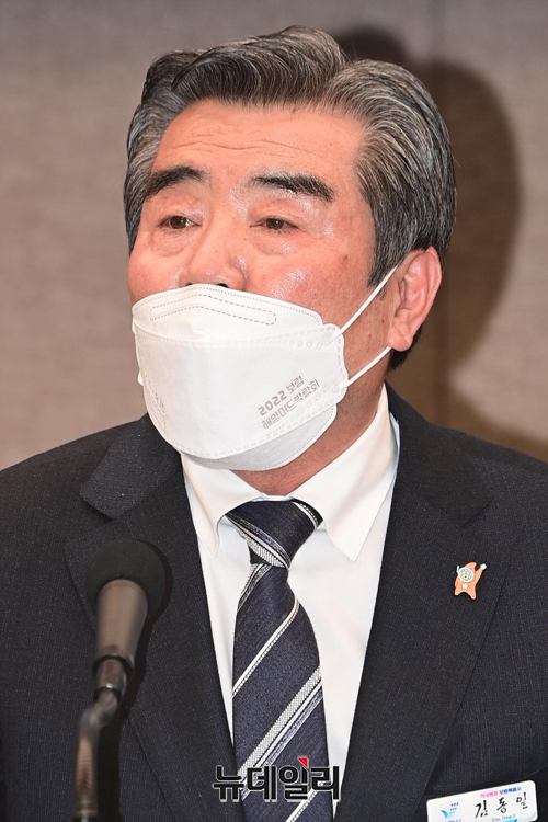 김동일 보령시장이 6일 오전 서울 중구 한국프레스센터에서 열린 '2022 보령해양머드박람회' 홍보대사 위촉식 및 기자간담회에서 인사말을 하고 있다.