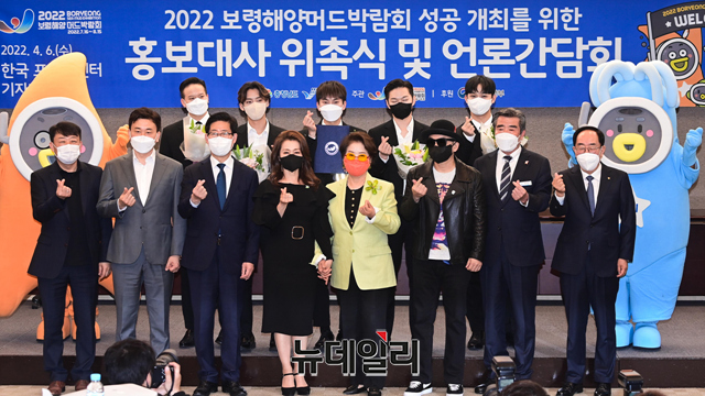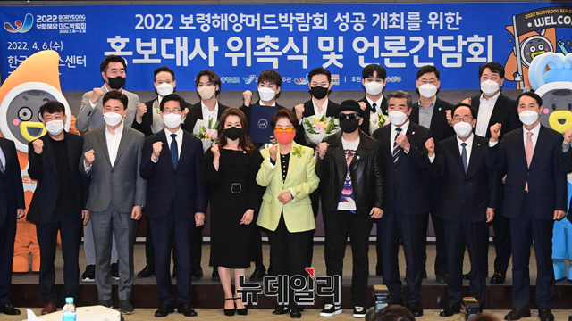 '2022 보령해양머드박람회' 홍보대사 위촉식 및 기자간담회가 6일 오전 서울 중구 한국프레스센터에서 열리고 있다. 박람회는 7월 16일부터 8월 15일까지 대천해수욕장 일원에서 열린다.
