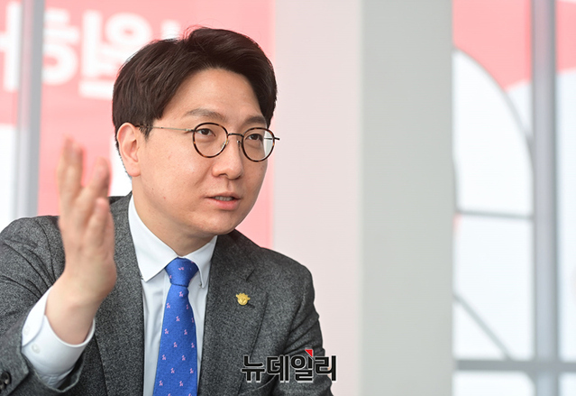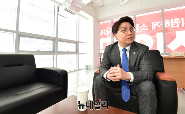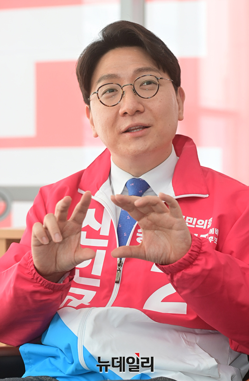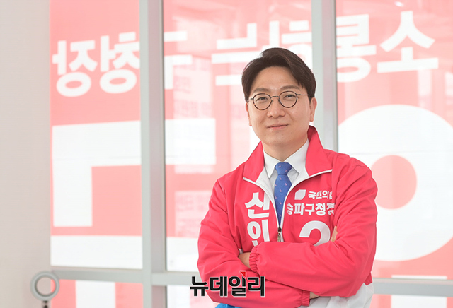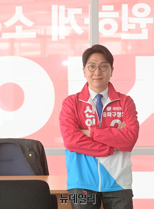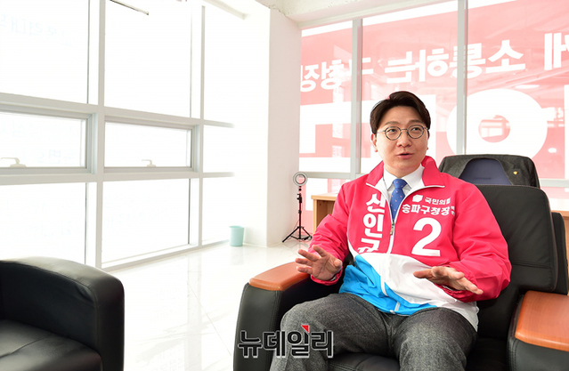 6.1 지방선거에서 송파구청장에 도전장을 낸 신인규 전 국민의힘 부대변인이 6일 오후 서울 송파구 삼전동에 마련된 선거사무실에서 뉴데일리와 인터뷰를 갖고 있다.