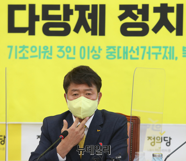 여영국 정의당 대표가 7일 오전 국회에서 열린 대표단회의에서 모두발언을 하고 있다. (사진=공동취재단)
