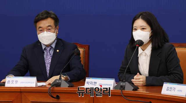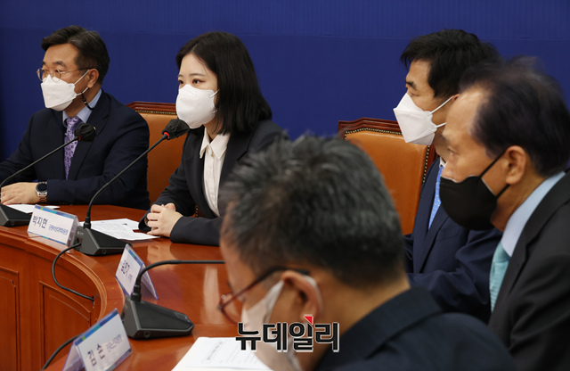 박지현 더불어민주당 공동비대위원장이 7일 오전 국회에서 열린 전국위원회 위원장단 간담회에 참석해 모두발언을 하고 있다. (사진=공동취재단)