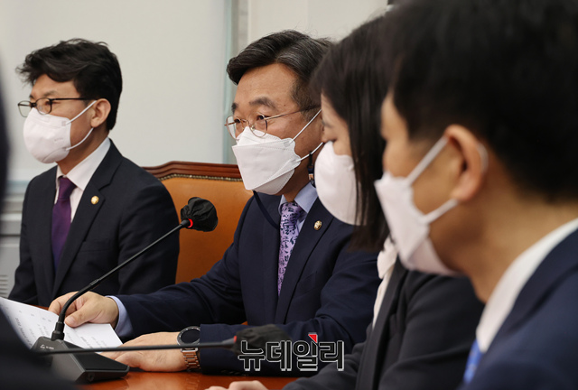 윤호중 더불어민주당 공동비대위원장이 7일 오전 국회에서 열린 전국위원회 위원장단 간담회에 참석해 모두발언을 하고 있다. (사진=공동취재단)