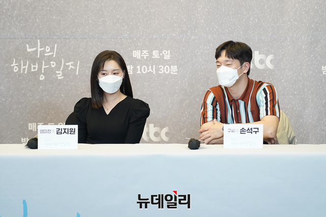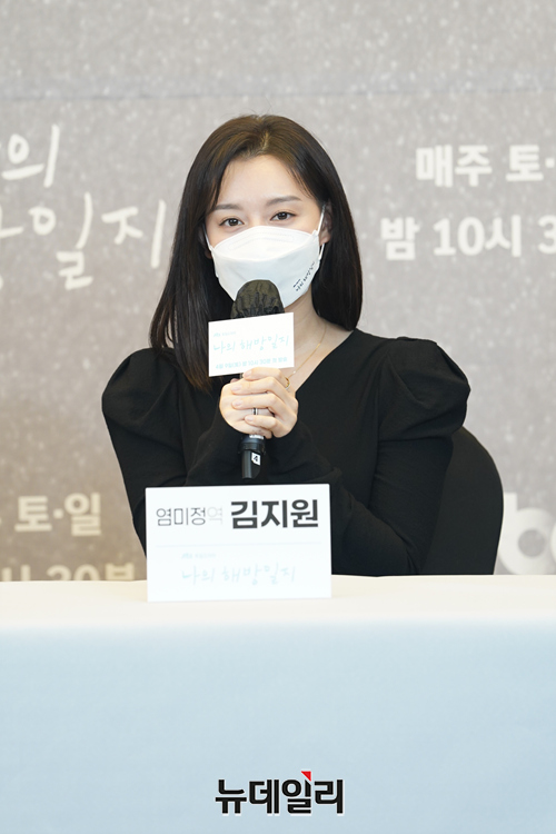 배우 김지원이 8일 오후 온라인으로 열린 JTBC 새 주말드라마 '나의 해방일지(극본 박해영, 연출 김석윤)' 제작발표회에서 포토타임을 갖고 있다.