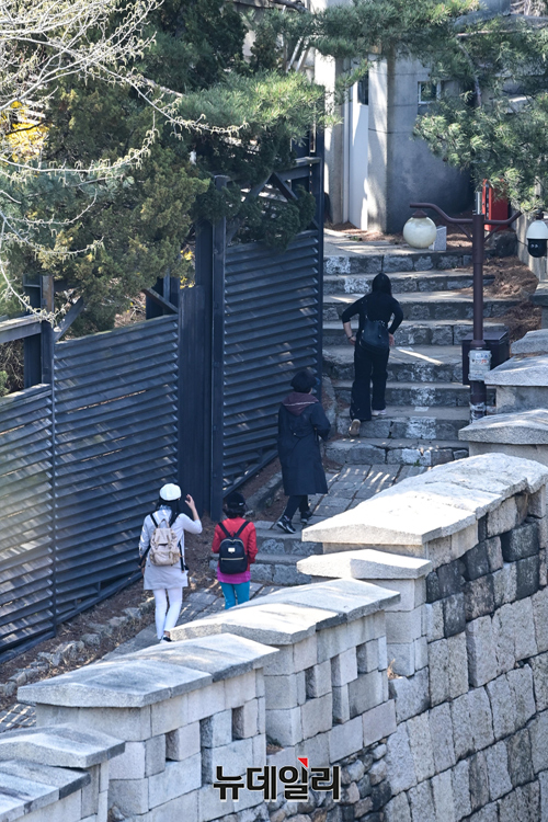 청와대 뒤편 북악산이 '김신조 사태' 후 54년 만에 시민에게 전면 개방됐다. 8일 오후 시민들이 개방된 남측 탐방로로 등산을 하고 있다. 정부는 2018년 인왕산을 개방한 이후, 재작년에는 북악산 북측 면을, 올해는 남측 면을 개방했다.