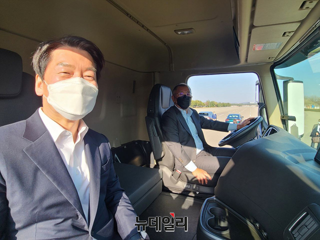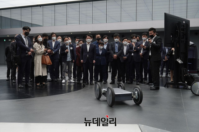 안철수 대통령직인수위원회 위원장과 정의선 현대자동차그룹 회장이 8일 오후 경기 화성 소재 현대자동차·기아 기술연구소에서 기념촬영을 하고 있다.