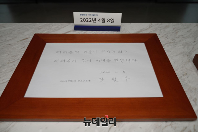 안 위원장은 '여러분의 기술이 역사가 되고, 여러분의 땀이 미래를 만듭니다'고 방명록을 남겼다. (사진=인수위)
