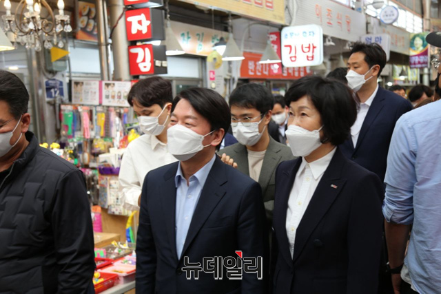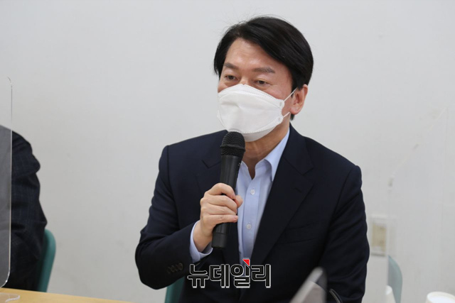 안철수 대통령직인수위원장이 10일 오후 서울 종로구 통인시장을 찾아 소상공인·자영업자 현장 간담회를 갖고 코로나19 손실보상 관련 의견을 청취하고 있다. (사진=인수위)