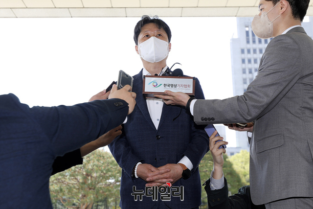 김후곤 대구지검장이 11일 오전 서울 서초구 대검찰청에서 열린 검찰 수사권 완전박탈 대응 전국검사장회의에서 취재진의 질문에 답변하고 있다.