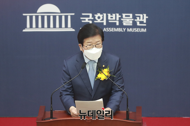 박병석 국회의장이 11일 오전 국회박물관 개관식에 참석해 기념사를 하고 있다. (사진=공동취재단)