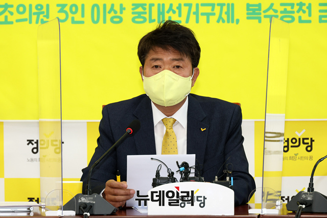 여영국 정의당 대표가 11일 오전 국회에서 열린 대표단 회의에서 모두발언을 하고 있다. (사진=공동취재단)
