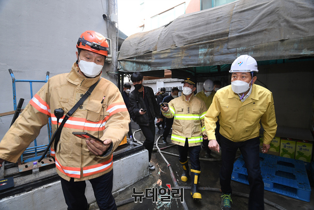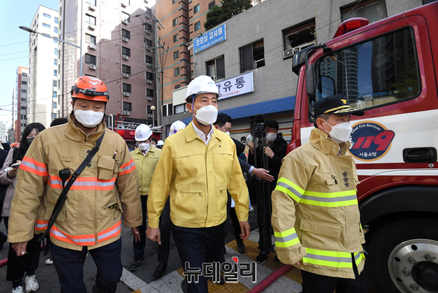 [포토] 영등포 고시원 화재현장 찾은 오세훈 서울시장