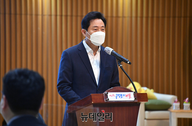 오세훈 서울시장이 11일 오전 서울 중구 서울시청 다목적홀에서 열린 '2022년 상반기 성인지‧폭력예방 통합교육'에서 발언하고 있다. (사진=서울시)