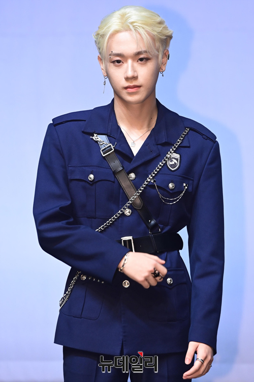 아이돌그룹 이펙스 멤버 금동현이 11일 오후 서울 서대문구 이화여대 삼성홀에서 열린 세 번째 미니앨범 '불안의 서 챕터 1. '21세기 소년들'' 발매 기념 쇼케이스에서 포즈를 취하고 있다.