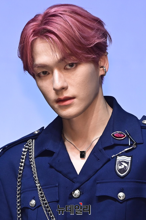 아이돌그룹 이펙스 멤버 위시가 11일 오후 서울 서대문구 이화여대 삼성홀에서 열린 세 번째 미니앨범 '불안의 서 챕터 1.-21세기 소년들' 발매 기념 쇼케이스에서 포즈를 취하고 있다.
