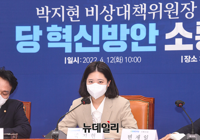 [포토] 중진의원단 당 혁신방안 소통간담회 참석한 박지현 위원장