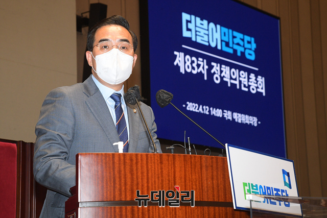 박홍근 더불어민주당 원내대표가 12일 오후 국회에서 열린 의원총회에서 발언하고 있다. (사진=공동취재단)