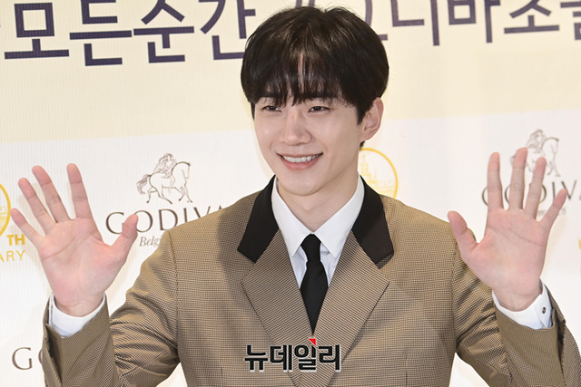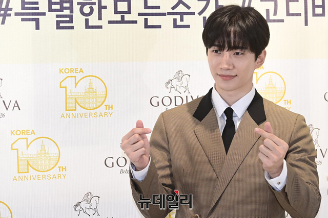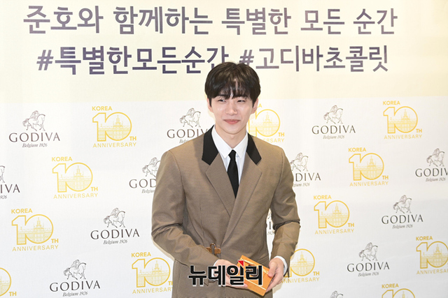 가수 겸 배우 이준호가 13일 오전 서울 서초구 고디바 삼성타운점에서 열린 고디바 한국 론칭 10주년 기념행사에서 포즈를 취하고 있다.