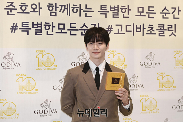 가수 겸 배우 이준호가 13일 오전 서울 서초구 고디바 삼성타운점에서 열린 고디바 한국 론칭 10주년 기념행사에서 포즈를 취하고 있다.