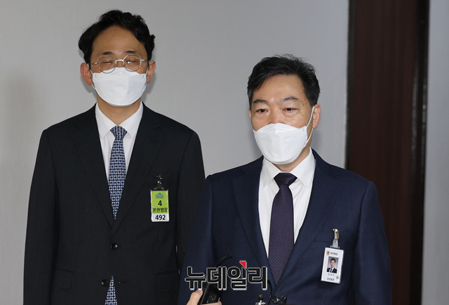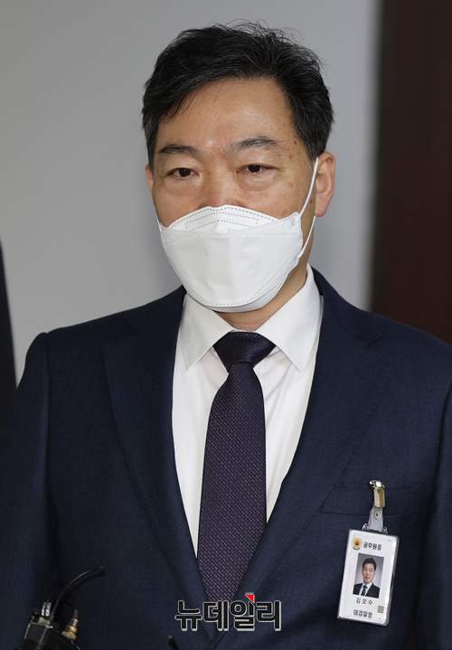 김오수 검찰총장이 14일 오전 국회 법제사법위원회 위원장실 앞에서 '검수완박(검찰 수사권 완전 박탈)' 반대입장을 밝히고 있다. (사진=공동취재단)