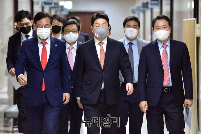 [포토] 입장하는 이준석 국민의힘 대표와 권성동 원내대표