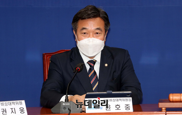 윤호중 더불어민주당 공동비상대책위원장이 15일 국회에서 열린 비상대책회의에서 발언을 하고있다. (사진=공동취재단)