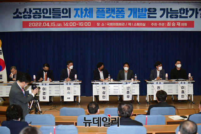 '소상공인들의 자체 플랫폼은 가능한가' 토론회가 15일 오후 국회 의원회관에서 국민의힘 소상공인위원장 최승재 의원 주최로 열리고 있다.