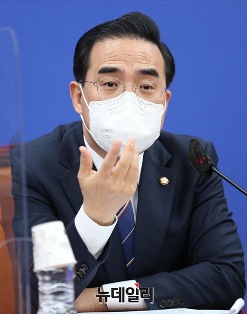 박홍근 더불어민주당 원내대표가 18일 오전 국회에서 열린 현안 기자간담회에서 취재진의 질문에 답하고 있다. (사진=공동취재단)