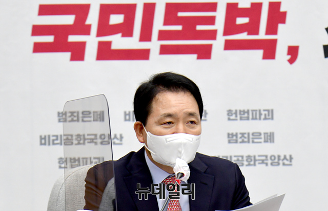 성일종 국민의힘 정책위의장이 19일 오전 국회에서 열린 원내대책회의에서 모두발언을 하고 있다.