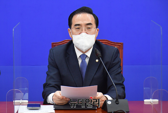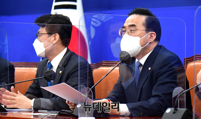 박홍근 더불어민주당 원내대표가 19일 오전 국회에서 열린 원내대책회의에서 발언하고 있다.