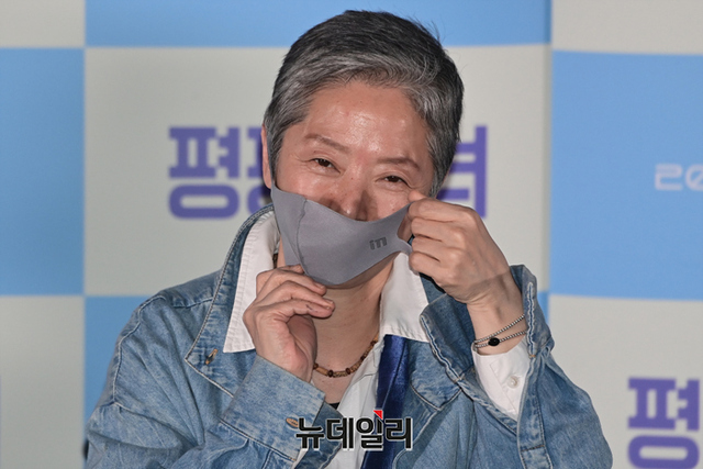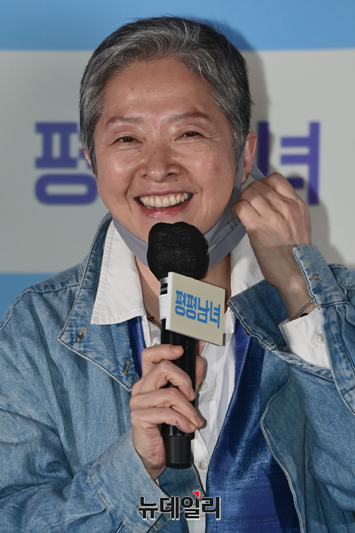 배우 서갑숙이 19일 오후 서울 용산구 CGV용산에서 열린 영화 '평평남녀(감독 김수정)' 언론배급 시사회에서 발언을 하고 있다.