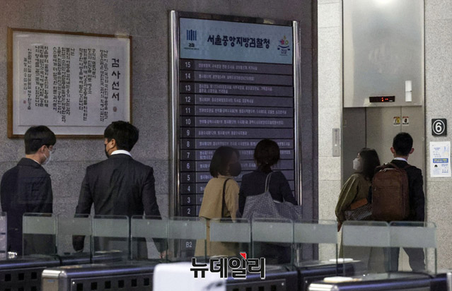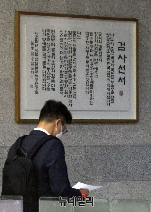전국 평검사 대표들이 19일 오후 서울 서초구 서울중앙지검 2층 대강당에서 열린 더불어민주당의 '검찰 수사권 완전박탈(검수완박)' 입법 강행과 관련해 전국 평검사회의를 위해 이동하고 있다. 전국단위의 평검사회의가 열린 것은 약 19년 만이다.