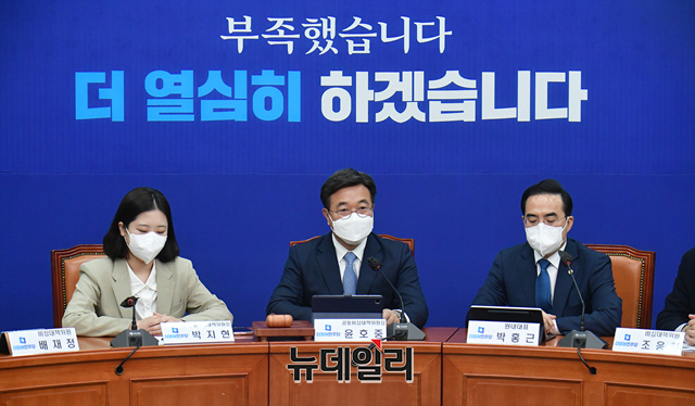 윤호중 더불어민주당 공동비상대책위원장이 20일 오전 국회에서 열린 비상대책위원회의에 참석해 모두발언을 하고 있다.