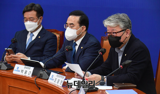 조응천 더불어민주당 비상대책위원이 20일 오전 국회에서 열린 비상대책위원회의에 참석해 모두발언을 하고 있다.
