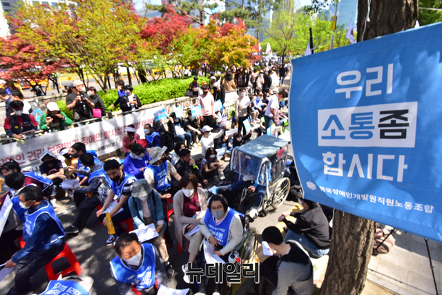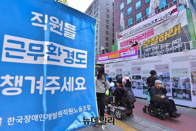 전장연은 "이날 오후 4시부터 6시 사이 여의도 이룸센터에서 더불어민주당사를 향해 '장애인 권리 민생 4법 제·개정을 촉구하는 행진을 진행하겠다"고 말했다.