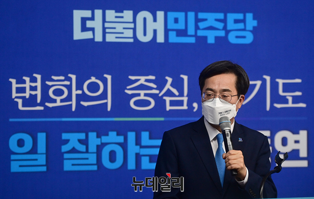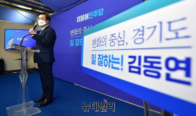 김동연 더불어민주당 경기도지사 예비후보가 20일 오후 경기 수원시 팔달구에 마련된 선거사무소에서 개소식을 갖고 인사말을 하고 있다. (경기 수원=정상윤 기자)