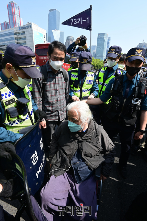 [포토] '장애인날' 맞아 차별 철폐 촉구, 경찰과 마찰 빚는 전장연