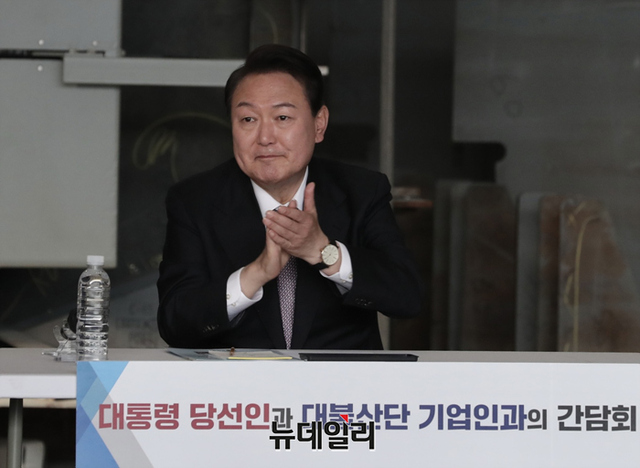 윤석열 대통령 당선인이 20일 오후 전남 영암군 삼호읍 대불산업단지에서 열린 간담회에서 발언을 하고 있다. (사진=인수위)