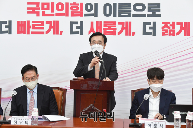 서병수 국민의힘 신임 전국위원회의장이 22일 오후 국회에서 열린 제2차 전국위원회의에서 국민의당과의 합당을 의결하고 있다.