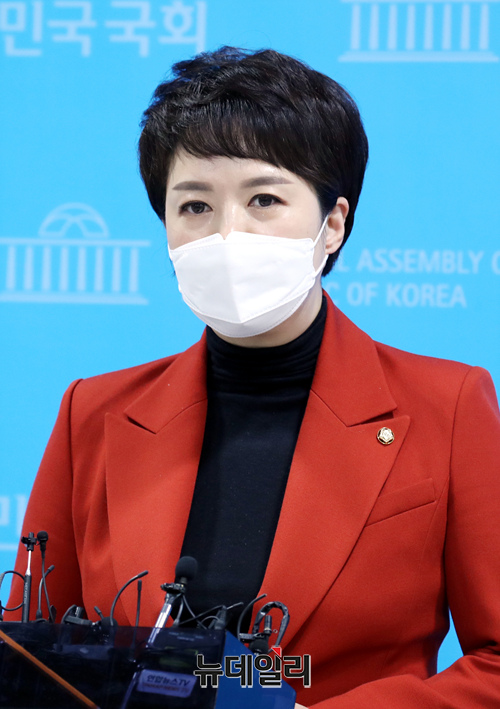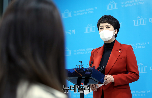 6.1 지방선거에 출마할 국민의힘 경기도지사 후보로 확정된 김은혜 의원이 22일 오후 국회 소통관에서 기자간담회를 갖고 있다.